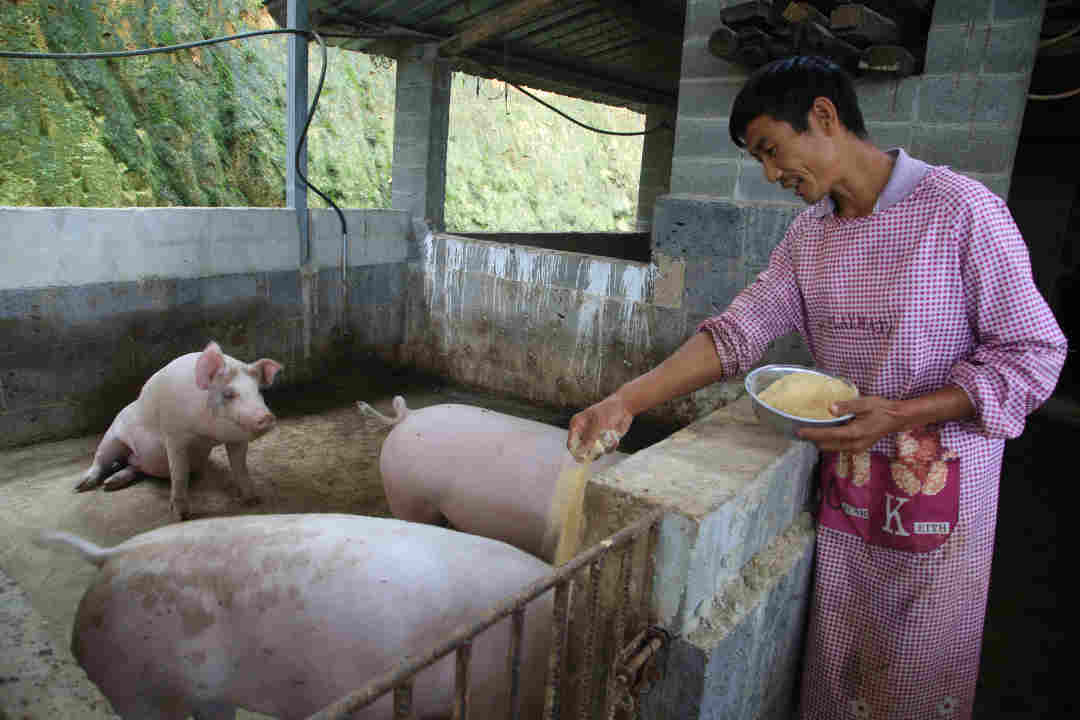 彭村民刻苦钻研养殖技术,第一次投资1.8万元购进了30头仔猪,养肥了卖,卖了又养,一茬接着一茬,养殖规模不断扩大。四年的时间,彭村民家的肥猪已经卖出去了200多头,并且随时保持着30头左右的肥猪存栏量,财富的雪球越滚越大。通过辛勤的劳动,彭村民一家实现了从贫困户到小康之家的逆袭。