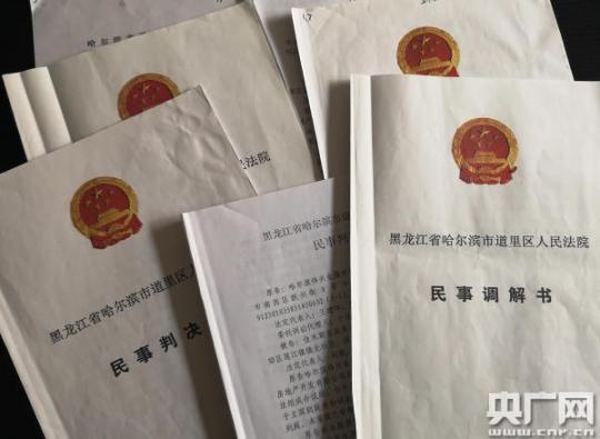 黑龙江省哈尔滨市道里区人民法院民事调解书和民事判决书(央广记者 管昕 摄)
