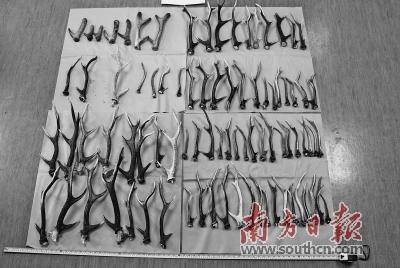 深圳邮局海关查获的85支鹿角,经鉴定均为梅花鹿鹿角。