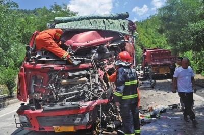 俩货车相撞司机被困 消防员破拆车头成功救人