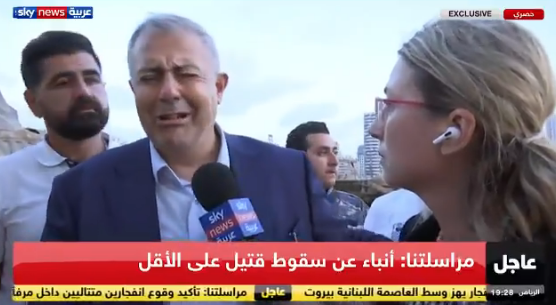 贝鲁特省长马尔万•阿布在现场讲话时哽咽哭泣。(视频截图)