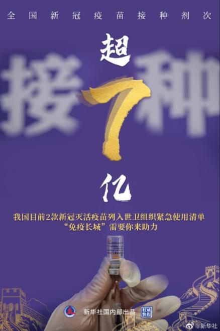 国家卫健委6月3日通报,全国新冠疫苗接种超过7亿剂次。5月以来,疫苗接种进入“加速跑”。防控形势依然严峻,切莫麻痹大意。共筑“免疫长城”,需要你来助力。(记者陈席元、徐鹏航;海报设计杨轶群)