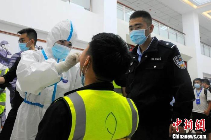 图为医务工作者人员为所有案件相关人员做核酸检测。 兰州市公安局供图