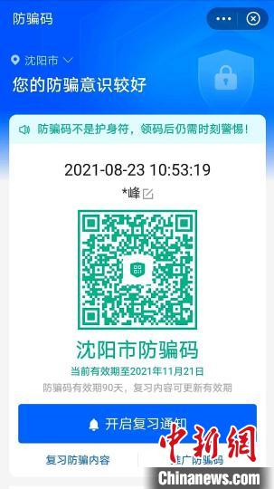 中新网沈阳8月23日电 (王景巍)沈阳公安反电信网络犯罪查控中心8月23日发布消息,为进一步加大宣传力度和扩大教育范围,沈阳公安反诈支队联合支付宝安全中心推出“沈阳防骗码”,人人都可以随时随地在线学习反诈知识。