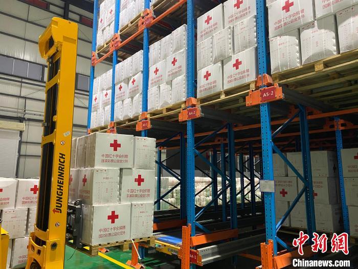救援物资正在转运出仓库。 四川省红十字会供图