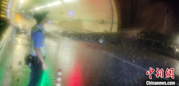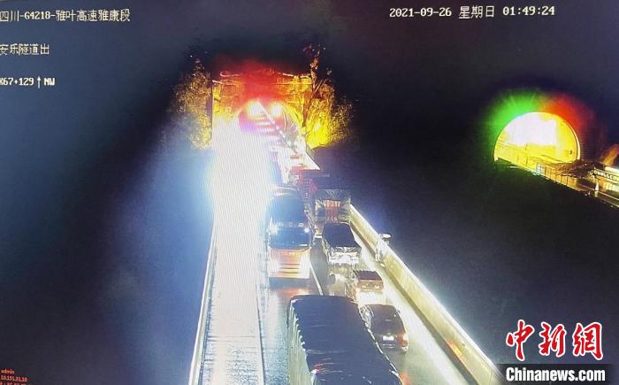 凌晨监控视频显示高速公路出现通行受阻情况。 雅康高速交警供图