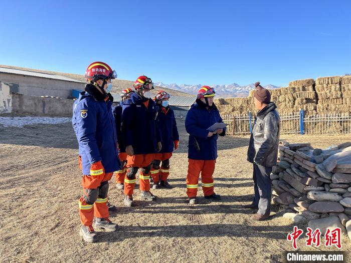 图为救援人员了解青海门源地震受灾民众。 青海消防供图
