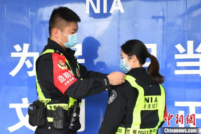 中新网崇左1月19日电 (林洁琪 袁金锋)从2020年至今,在这场没有硝烟的疫情防控战争中,许多伉俪不得不将婚礼延期,主动投入到一线的战“疫”工作当中,在广西崇左边境管理支队雷平边境检查站,来自湖北襄阳的田国辉、尹孟婷就是其中的两人。