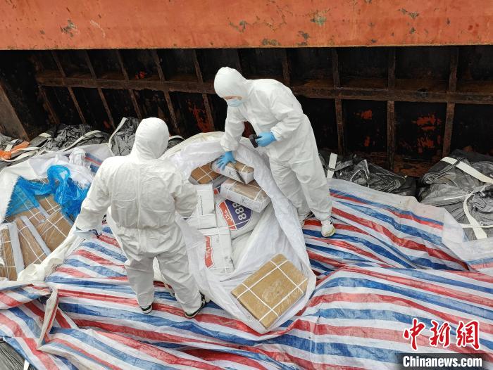 图为执法人员查扣涉案冻品。 平潭海警局供图