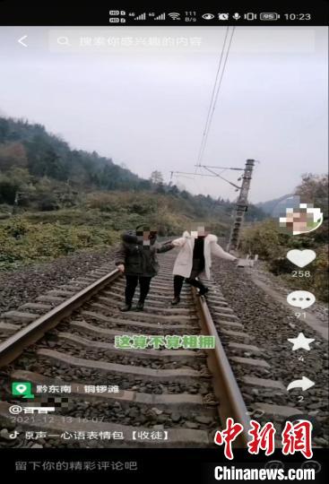 中新网贵阳2月10日电 (郭红 吴志伟)随着自媒体时代短视频火爆,一些网友为出圈涨粉,不分时间地点拍摄短视频,将自己的安全置之度外。贵阳铁路公安处民警日前网上巡查发现两名在铁道上拍摄发布短视频的女子,在调查核实后,依法分别给予了行政罚款处罚。