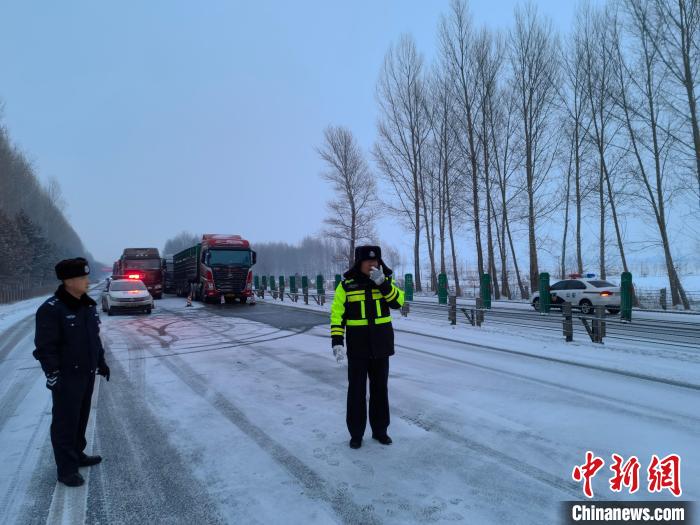 2日降雪后,哈尔滨市交警部门对管辖内的哈同、鹤哈、机场高速实施交通管制措施,县市执勤警力对国省道每20公里部署一台警车,开展双向排查、巡控,发现警情及时处理。