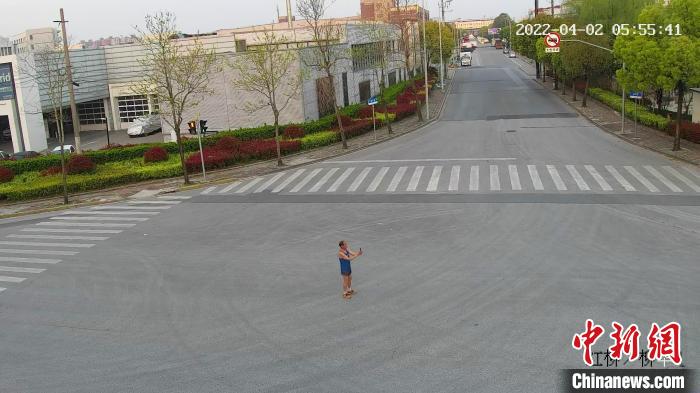 李某在路口“自拍打卡”。 上海普陀警方供图