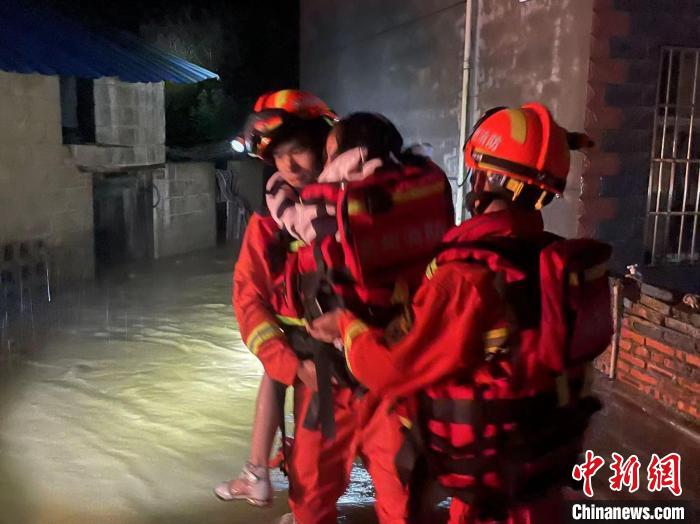 图为消防员转移被困民众。 贵安新区消防救援支队供图