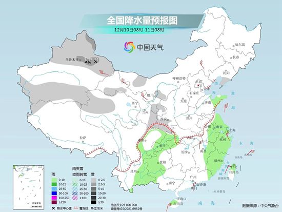 中央气象台预计,今天新疆北疆及沿天山地区、内蒙古中部、辽宁南部、河北北部、甘肃东部等地部分地区有小到中雪或雨夹雪,其中,新疆伊犁河谷局地有大雪(5~7毫米)。陕西南部、四川盆地西部、贵州中西部、云南东部、湖北西部、山东半岛、江苏、安徽东部、上海、浙江、福建东北部、广西西部、海南岛西北部和中部、台湾岛中北部等地部分地区有小雨。