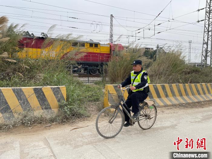 今年60岁的袁伦,是南宁铁路公安局北海公安处钦州港站派出所的一名线路民警。2024年春运,临近退休的袁伦依旧骑着他心爱的自行车,穿梭在铁路沿线,站好他铁警生涯中“最后一班春运岗”。
