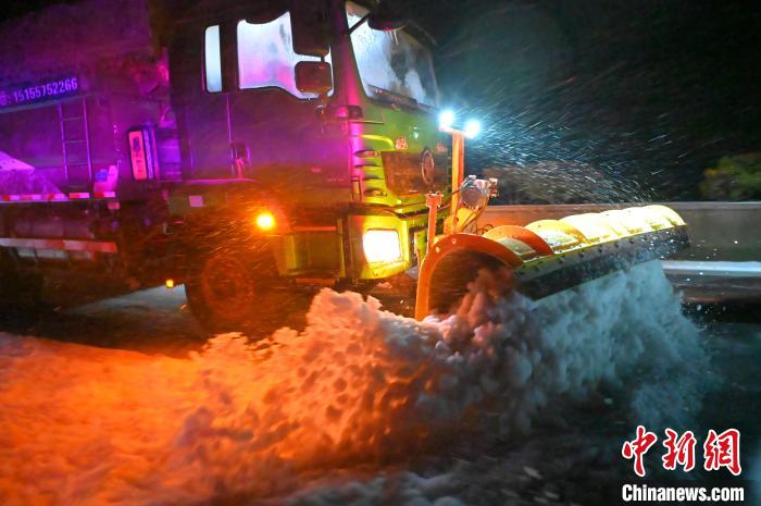 20日夜,安徽交通系统全力以赴开展道路除雪融冰工作和收费道口积雪清扫。安徽省交通厅 供图。