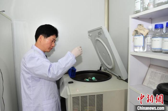 上海海关动植物与食品检验检疫技术中心首席专家潘良文研究员在进行样品核酸提取离心操作。 樊彦莉 摄