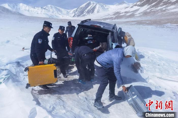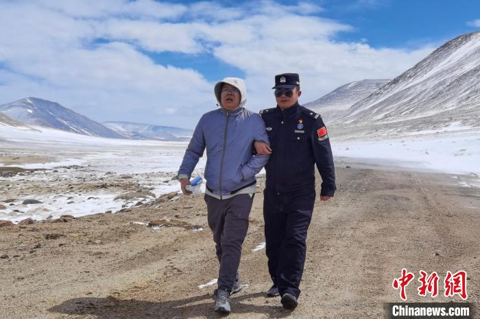 图为4月16日,西藏阿里边境管理支队巴嘎边境检查站民警救援受困游客。邓鸿 摄