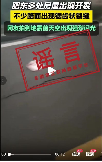 地震发生后,有网民发布视频称,合肥某高层住宅被震开裂,不少路面出现锯齿状裂缝。经核实,该视频为拼接剪辑视频,未发现因地震导致多处路面出现裂缝的情况;视频中高层建筑之间的缝隙为建筑伸缩缝,并非因地震导致。