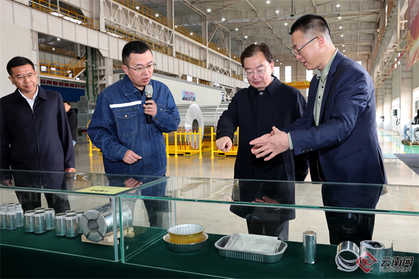 王宁时隔一年再到文山州调研绿色铝发展,对今年新增11个铝产业项目,建成20万吨再生铝产能,全年产值可达1000亿元的快速发展态势十分欣慰。这次来到砚山县,王宁在宏泰、创格公司调研铝材精深加工延链情况。他指出,近年来全省积极引培龙头企业,持续推进绿色铝延链补链强链,产业集群已成形起势。要充分发挥绿电+先进制造业优势,深化土地节约集约利用,加快再生铝项目建设,推动绿色铝向新材料、终端制造等价值链高端延伸,建设以绿色低碳为标识的现代绿色铝产业体系。