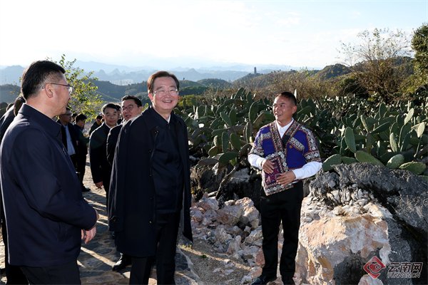 12月18日至19日,王宁到文山州调研。图为王宁在文山市红旗社区庄子田村仙人掌种植基地,与返乡创业、带领群众致富的村支书鲁春红深入交流。记者 雷桐苏 摄