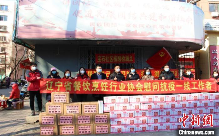 辽宁省餐饮烹饪行业协会会同沈阳市天合恒美餐饮管理有限公司,为日夜奋战在一线的疫情防控人员送慰问品。 辽宁省民政厅供图