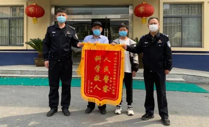16日下午,小章与爷爷一起送来了锦旗。 沭阳警方供图
