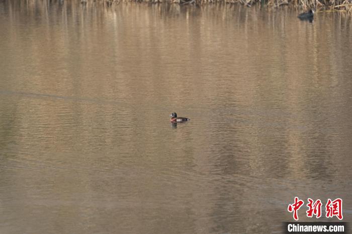 中新网南京1月6日电 (徐珊珊)“我们拍摄到的青头潜鸭与数只白眼潜鸭混群,一起在湿地游弋、飞翔、觅食、休憩,周边有白骨顶、小??等水鸟相伴。”江苏镇江长江豚类省级自然保护区管理处副主任王召根6日在接受采访时说。