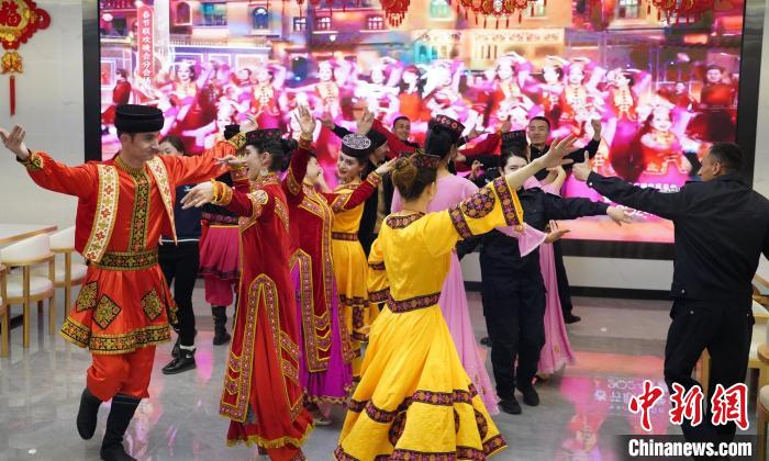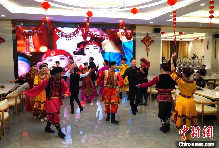 中新网乌鲁木齐2月17日电 (张楠)2月16日,大年初七。新疆喀什地区塔什库尔干塔吉克自治县文工团参加完央视春晚(喀什分会场)的舞蹈演员们受邀来到红其拉甫边检站,一场警营快闪秀,为民警送上一份节日惊喜。