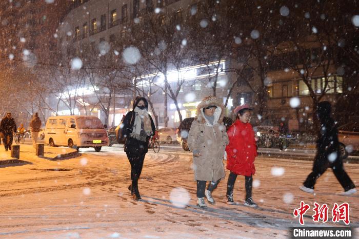 2月20日,北京城区迎来甲辰龙年首场降雪,市民冒雪出行。 记者 蒋启明 摄