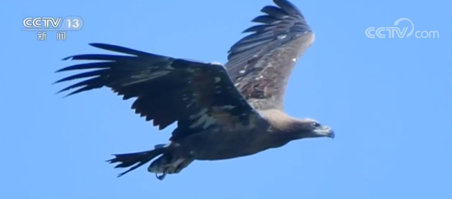 照片中这只褐色的大鸟就是玉带海雕,它的双目炯炯有神,正展开一双长长的翅膀,在天空翱翔盘旋,优美的姿态在蓝天的映衬下格外耀眼。