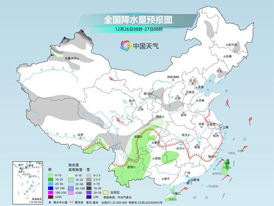 具体来看,中央气象台预计,今天,新疆北部和南疆南部山区、内蒙古东北部、黑龙江北部、吉林北部和东南部、西藏北部和东南部、青海东部、甘肃河西、川西高原北部、陕西南部、湖北西部等地部分地区有小到中雪或雨夹雪。西南地区东部、江南、江淮西南部、云南东部、华南、海南岛、台湾岛等地部分地区有小到中雨。