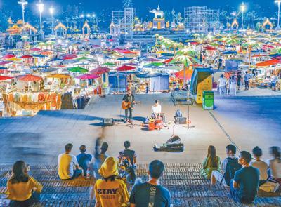 夏季的夜晚,是消费活跃的时间档,吃夜宵、逛商场、看电影……近年来,随着消费结构的升级,灯光夜市转变为包括“食、游、购、娱、体、展、演”等在内的多元夜间消费市场。图为近日,云南西双版纳景洪市告庄夜市灯火通明。