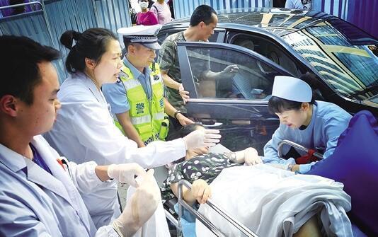 15日16时20分许,一辆云F牌照车急停在昆楚大队昆明西警务站,从车上冲出一名男子,焦急地对执勤民警说:“我媳妇在车上生娃娃了,现在大出血,求求你们救救我媳妇和娃娃。”昆楚大队内勤中队负责人李万江得知情况,迅速安排执法站民警驾驶警车开道,带领男子火速赶往云南省第一人民医院。