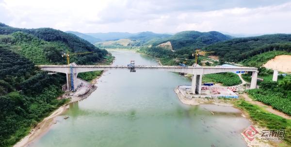 中老昆万铁路橄榄坝澜沧江大桥顺利合龙,后续将进行上部加劲钢管拱安装施工。陈泉利 摄