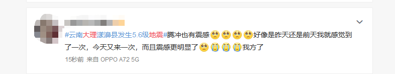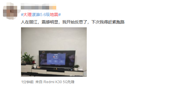 大理漾濞地震使昆明、保山、丽江、怒江等多地有震感,网微博上纷纷表示震感明显。