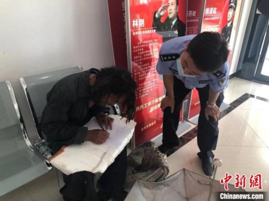 随后,警方将流浪男子带回派出所并提供了食物和水,经过安抚、引导,流浪男子的情绪逐渐稳定。放下戒心后,他在纸上歪歪扭扭地写下了自己的名字。