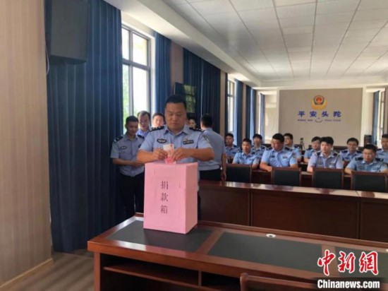 头陀派出所工作人员为周某捐款。 吴宣仪供图