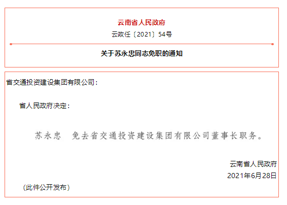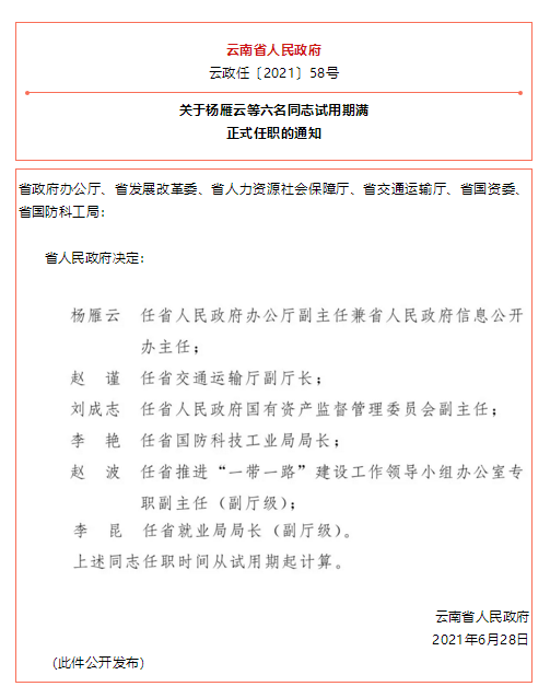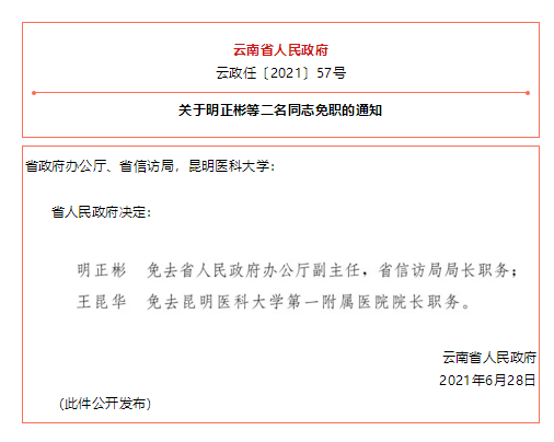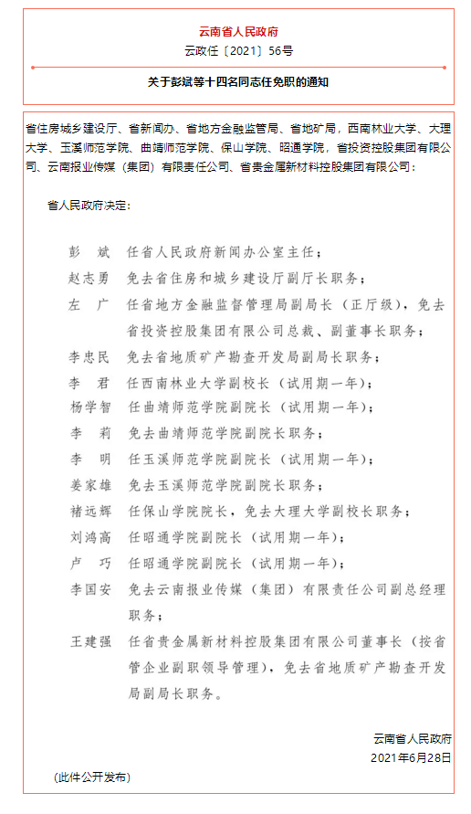 据云南省人民政府网站消息,云南省人民政府发布一批任免职通知,涉及26名干部,具体如下: