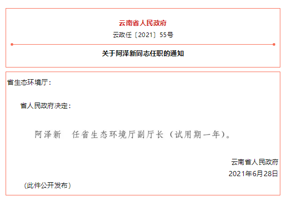 云南省人民政府发布一批任免职通知,涉及26名干部