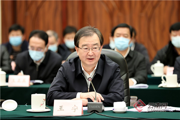 云南省委书记、省政法队伍教育整顿领导小组组长王宁作表态发言。 记者 雷桐苏 摄