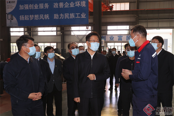 11月20日,全国人大常委会副委员长、党组成员张春贤一行在楚雄彝族自治州禄丰市碧城镇禄丰速控产业创业孵化示范园调研。记者 顾彬 摄