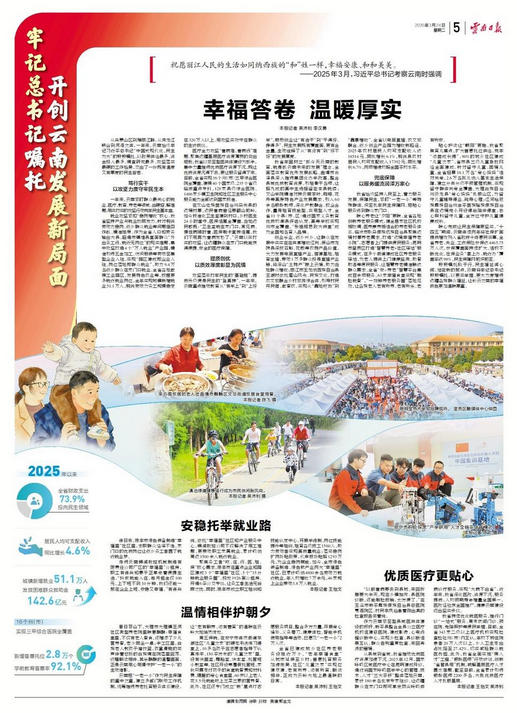 从乌蒙山区到瑞丽江畔,从独龙江峡谷到洱海之滨,一年来,云南始终牢记习近平总书记“中国式现代化,民生为大”的殷殷嘱托,以政策供给最多、资金投入最多、调查研究最多、攻坚落实最硬的工作格局,交出了一份既有温度又有厚度的民生答卷。
